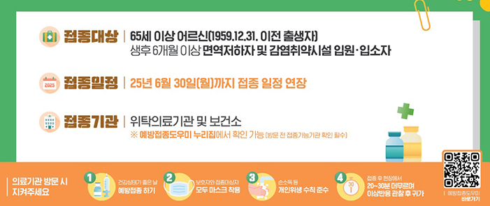 현재 진행 중인 ‘2024-2025 절기 코로나 예방접종’은 원래 5월 말까지였지만, 고위험군 대상의 경우 6월 30일까지 연장되었어요.