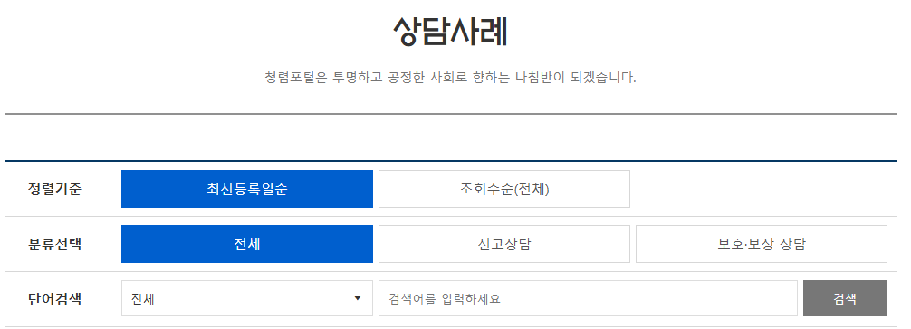 이 모든 정보는 청렴포털 부패공익신고 홈페이지에서 관리되고 있어 투명성이 높죠.