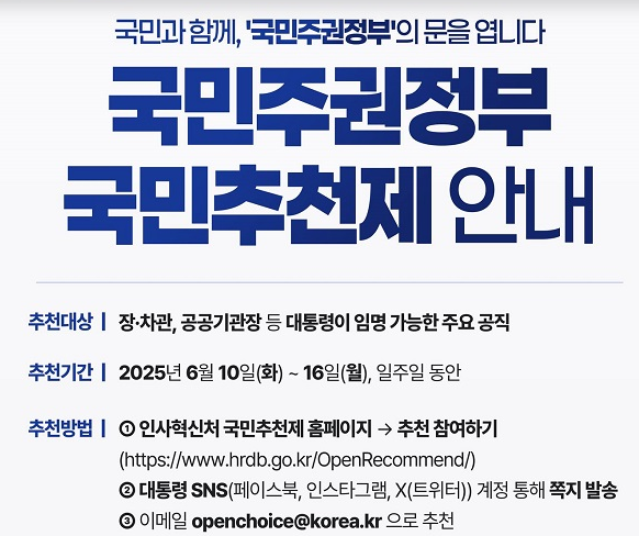 과거에는 공직 인사가 대부분 비공개로 이뤄졌다면, 이제는 국민이 국가 운영의 주체로서 인재 선발 과정에 참여할 수 있는 길이 열린 셈이죠.