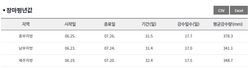 2025년 장마 예상 기간 예측하기
