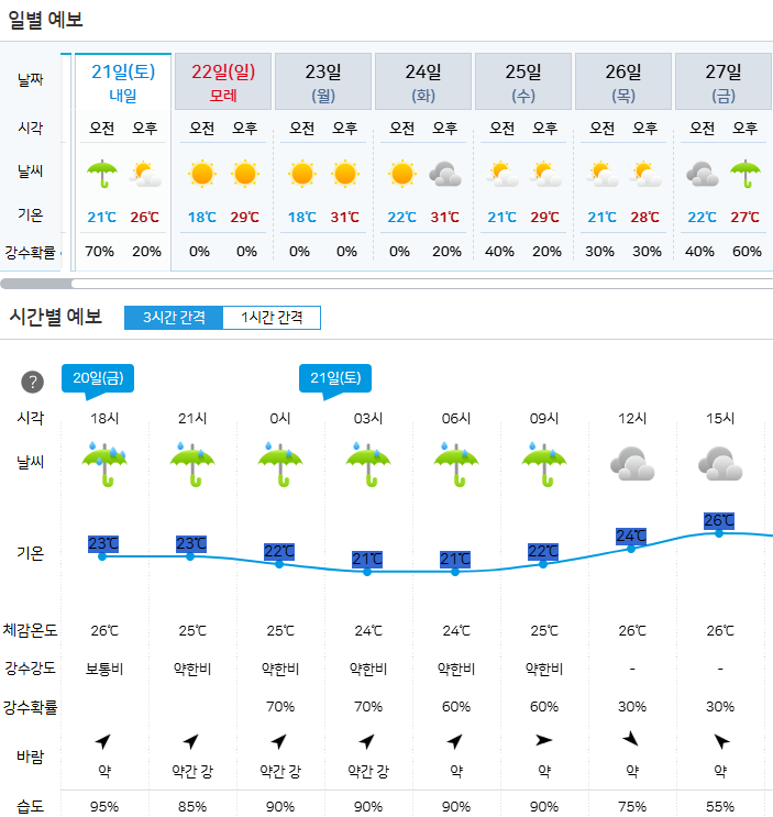 이 시기엔 하루종일 흐리고 가끔씩 굵은 비가 내리기도 하며, 습도가 매우 높아 체감 온도가 올라가곤 하죠.