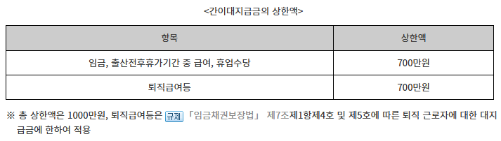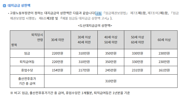 도산대지급금 상한액 정리