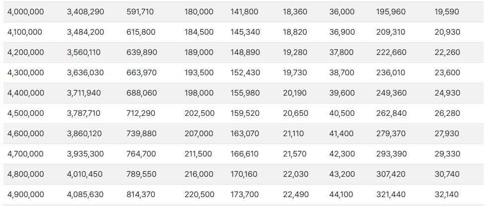 실수령액표를 보면 연봉이 높아질수록 공제 금액도 커진다는 것을 직관적으로 알 수 있어요.