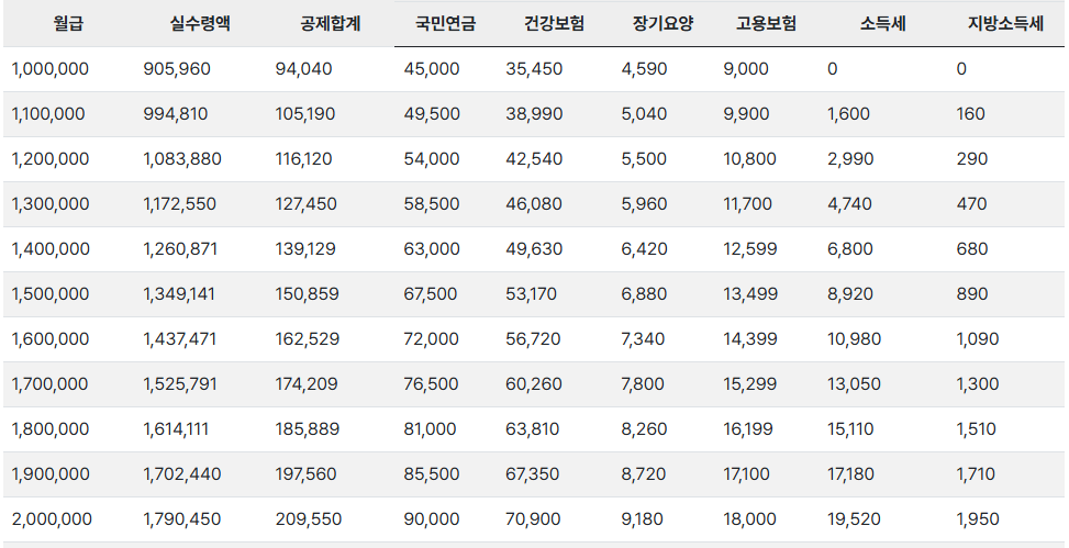 월급 실수령액표를 보면 같은 월급이라도 사람마다 공제 항목에 따라 실수령액이 크게 달라지곤 해요.