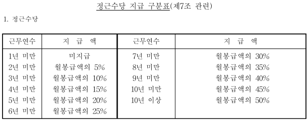 정근수당 자체는 근속기간이 길어진다고 해서 지급률이 올라가지는 않아요.