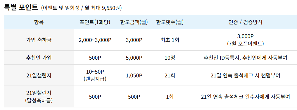 단순한 가입에도 포인트가 쌓인다는 점에서 첫 진입 장벽이 낮다는 게 큰 장점이에요.