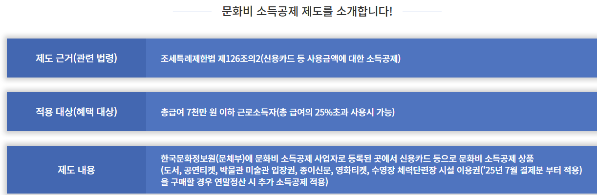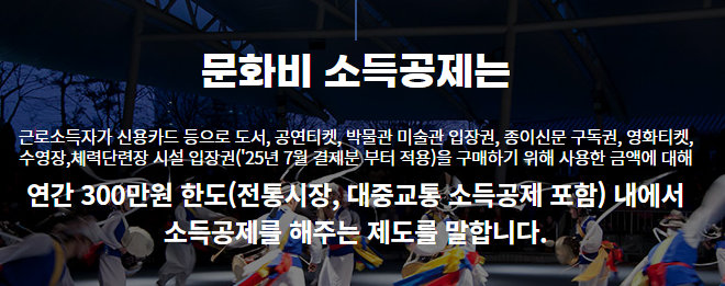 문화비 소득공제는 도서, 공연, 박물관·미술관 입장료 등의 지출에 대해 연말정산 시 소득공제를 받을 수 있는 제도예요.