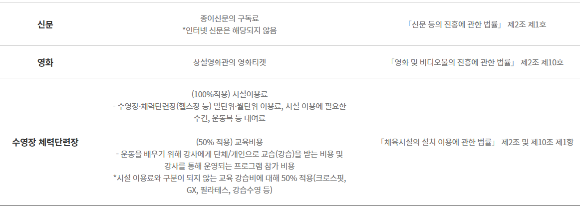 단순 영화 관람이나 게임 등은 여전히 제외 항목으로 분류돼 있답니다.