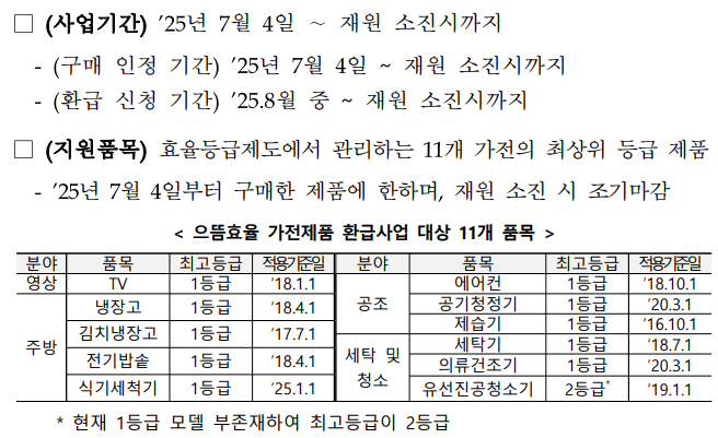 2025년 으뜸효율 가전제품 환급사업 신청은 7월 4일부터 제품을 구매한 경우에 한해 가능합니다.