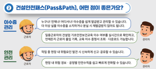고용노동부는 앞으로 건설안전패스의 기능을 단순한 이수증 확인을 넘어, 현장 전반의 안전관리 도구로 확대해나갈 계획이라고 밝혔어요.