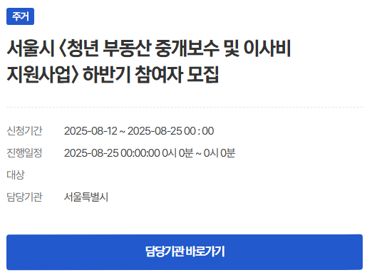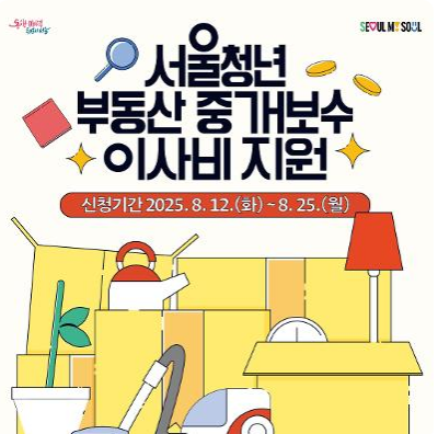 2025년 8월 12일부터 '서울청년 부동산 중개보수 이사비 지원' 사업 접수가 진행됩니다.
