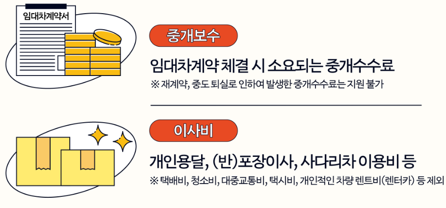 부동산 계약 시 발생하는 중개보수와 실제 이사 비용을 실비로 지원합니다.
