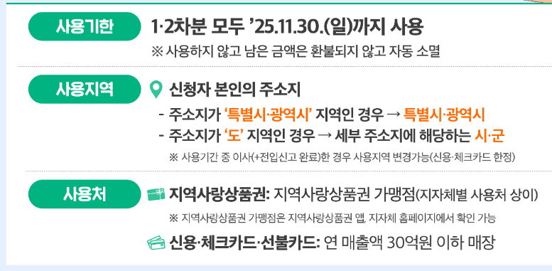 특히 지역사랑상품권은 소상공인 매장에서만 사용 가능하다는 점을 기억하세요.