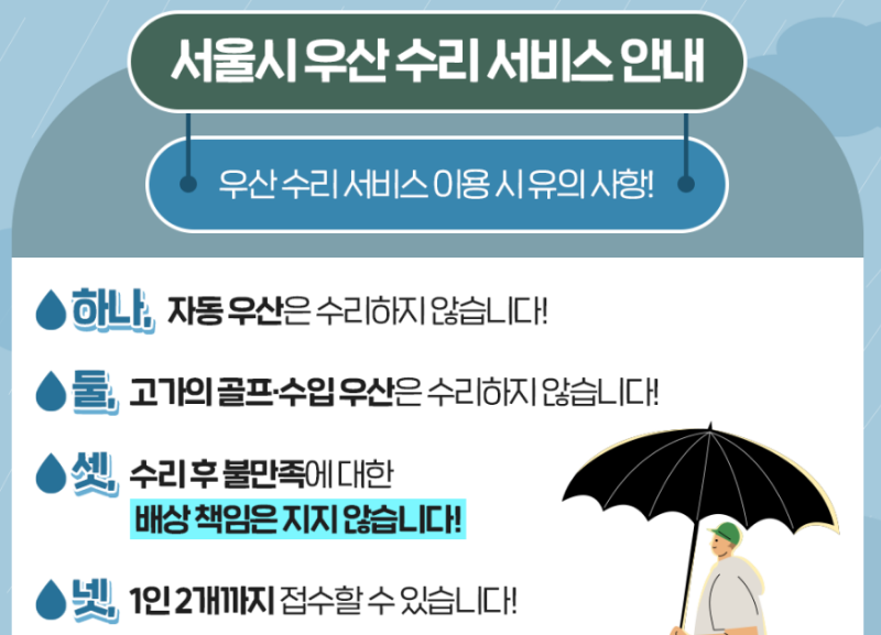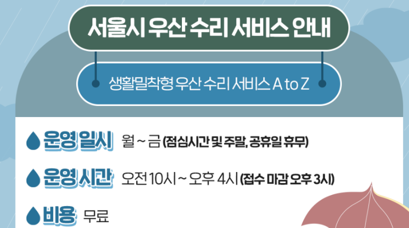 서울에는 ‘찾아가는 우산수리센터’가 운영되어 여러 구를 순회합니다.