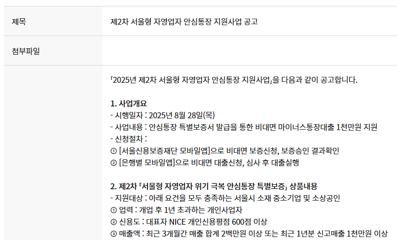 서울시 안심통장 2호 지원사업 공고 확인하기