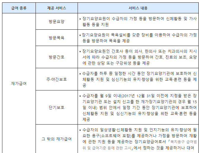 가족요양은 ‘재가급여’ 항목으로 분류되어 1일 1회 제공 원칙을 따릅니다.