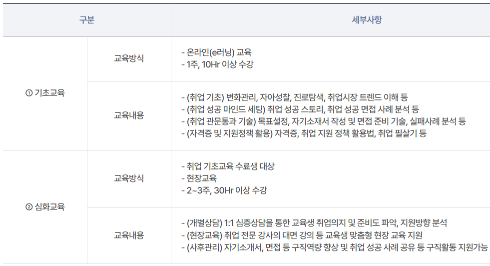 심화교육 수료 후 국민취업지원제도에 별도 신청을 해야 합니다.