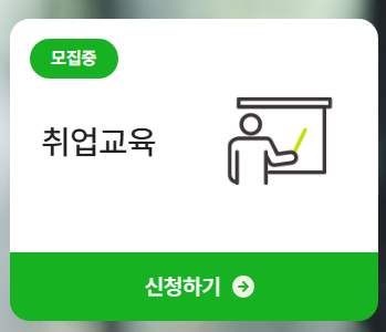 상단 메뉴에서 ‘특화취업지원 → 취업교육’을 선택하면 과정 목록이 나옵니다.