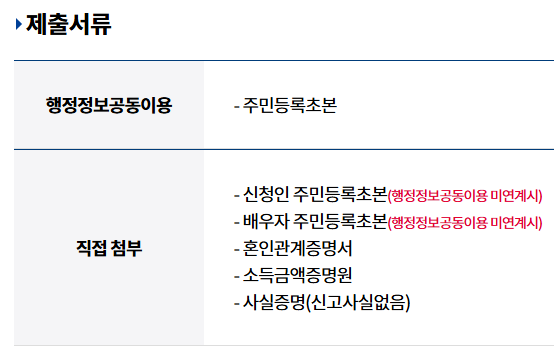 부부 모두의 주민등록초본과 혼인관계증명서 등 서류를 스캔 또는 PDF로 업로드해야 해요.