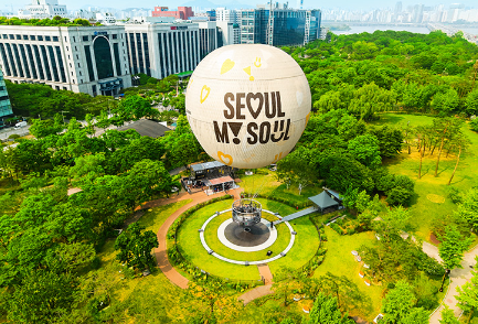 서울달은 헬륨가스로 띄운 지름 22m의 계류식 기구입니다. 최대 130m 상공까지 올라가 서울 전경을 감상할 수 있습니다.