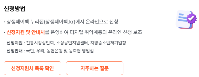 오프라인 신청이 필요한 경우 전통시장 상인회나 소상공인지원센터를 통해 지원받을 수 있습니다.