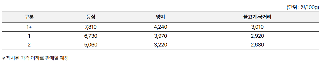 양지는 100g당 약 3,970원, 불고기와 국거리는 2,920원 이하입니다.