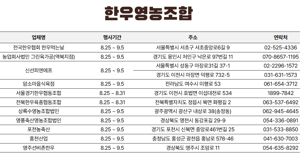 2025년 가을 한우 반값 할인 행사는 8월 25일부터 9월 5일까지 이어집니다.
