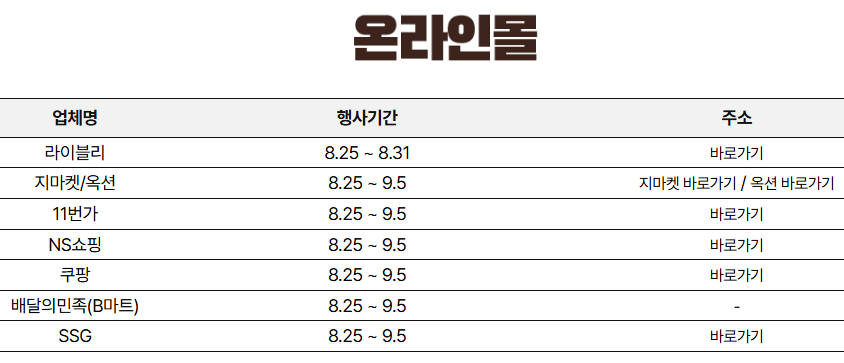 더 많은 정보는 각 온라인몰 이벤트 페이지에서 확인할 수 있습니다.