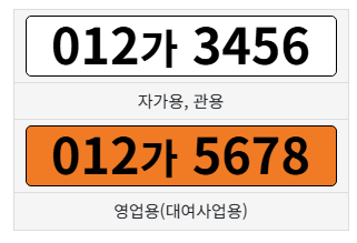 ➤ 노란색 번호판: 택시·버스 등 영업용 차량