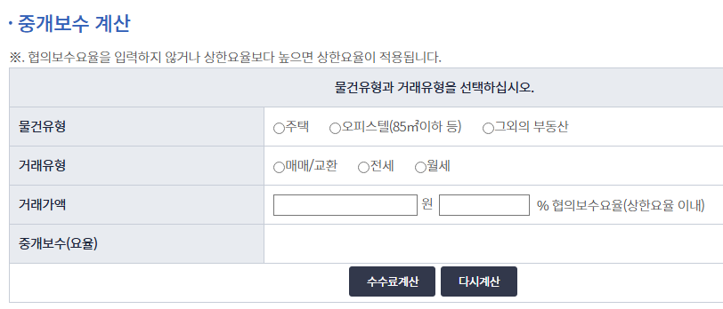 부동산 중개수수료 계산기 사용법