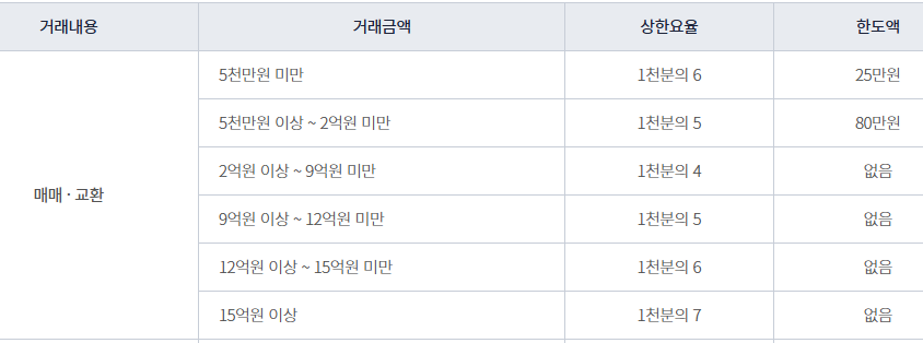 ➤ 계산방법: 거래금액 × 요율(0.4~0.6%)