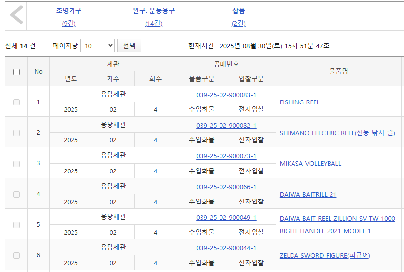 최근 부산세관에서는 2025년 제5차 공매가 진행되며 다양한 해외 물품이 공개되었습니다.