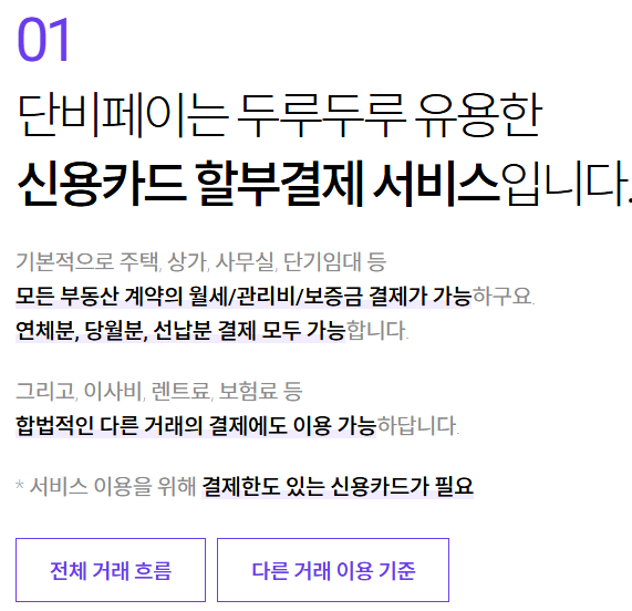 단비페이는 월세, 관리비, 보증금 등 주거 비용을 신용카드로 납부할 수 있는 핀테크 서비스입니다.