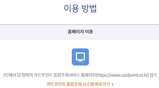 ➤ 서비스명: 여신금융협회 카드포인트 통합조회