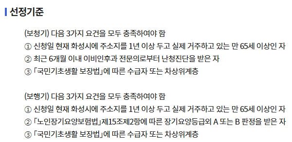 자세한 대상 요건은 보건복지부 및 지자체 복지 홈페이지에서 확인할 수 있습니다.