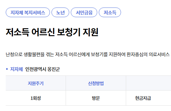 ➤ 신청 절차: 이비인후과 검사 → 장애등록 → 보청기 구입 → 검수 확인서 제출