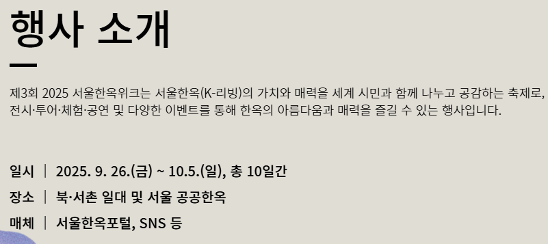 📌 자세한 일정과 예약 방법은 서울한옥포털 공식 홈페이지에서 확인하실 수 있습니다.