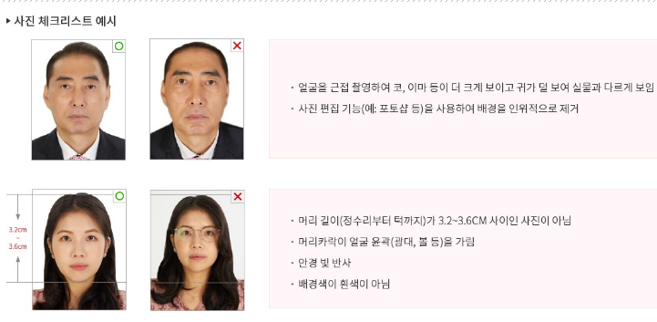 ➤ 여권사진 규격: 3.5cm × 4.5cm, 머리길이 3.2~3.6cm, 배경은 흰색