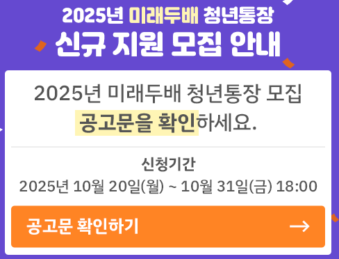 📌 자세한 공고와 일정은 미래두배 청년통장 공식 홈페이지에서 확인 가능합니다.