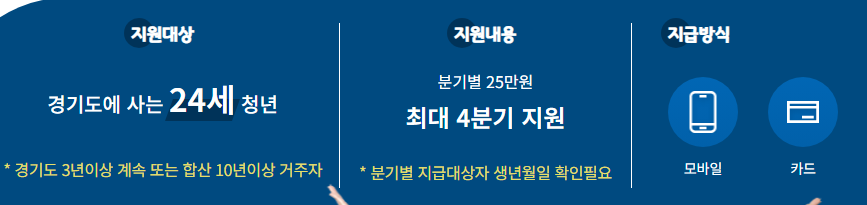 ➤ 지원대상: 경기도 거주 만 24세 청년 (3년 이상 계속 또는 10년 이상 거주)