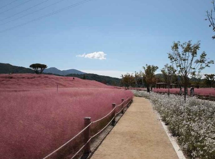 부산 대저생태공원 역시 핑크뮬리와 코스모스가 어우러져 가족 단위 방문객에게 인기가 높습니다.