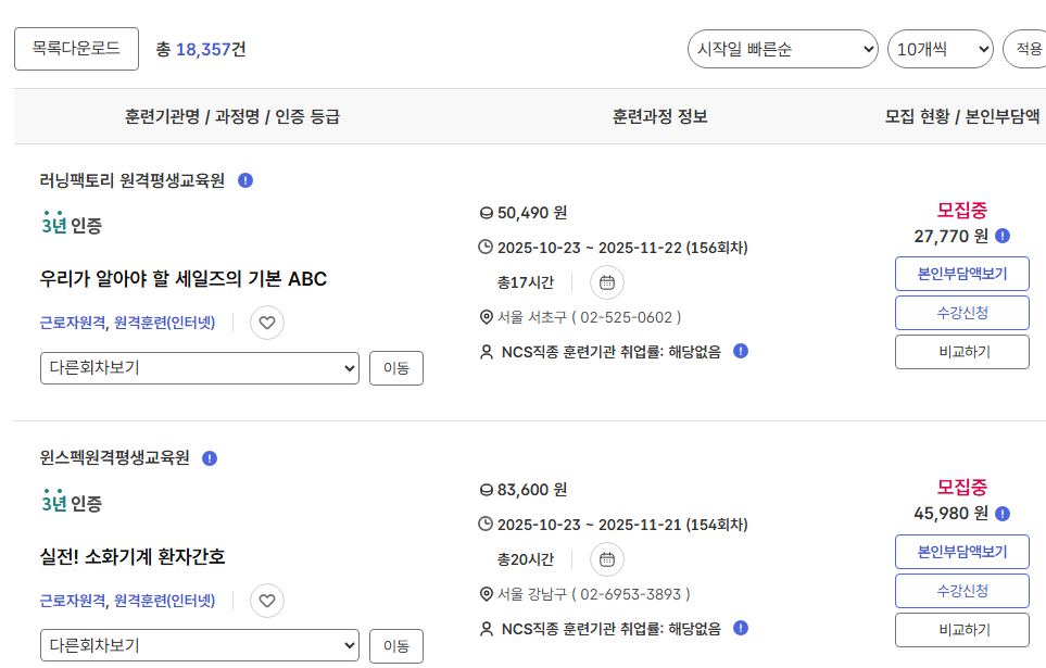 다만 일부 훈련과정은 사전 상담이 필요하므로 투자 효율성을 높이려면 미리 확인해야 합니다.