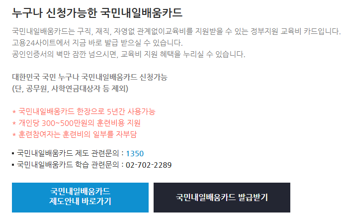국민내일배움카드는 고용24나 HRD-Net 사이트에서 온라인으로 간편하게 신청할 수 있습니다.