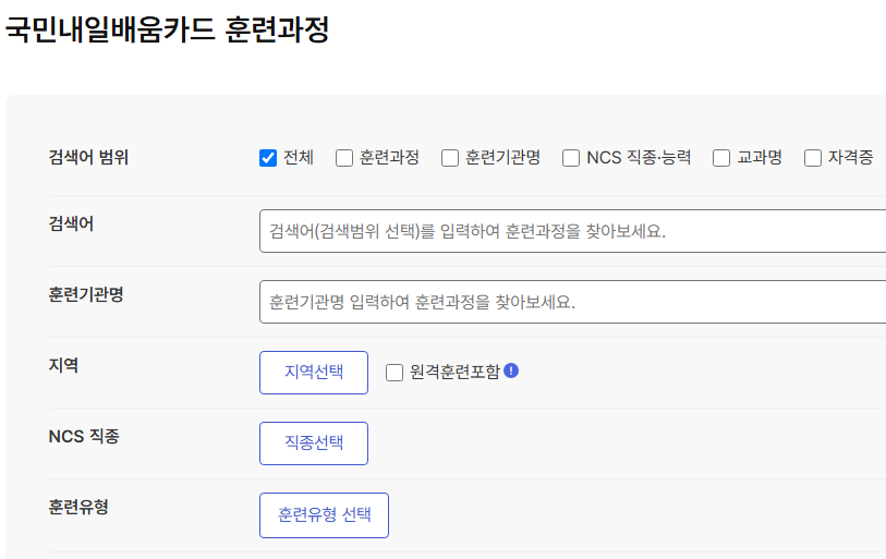 HRD-Net에서 지역, 직종, 훈련유형을 선택해 자신에게 맞는 과정을 찾을 수 있습니다.