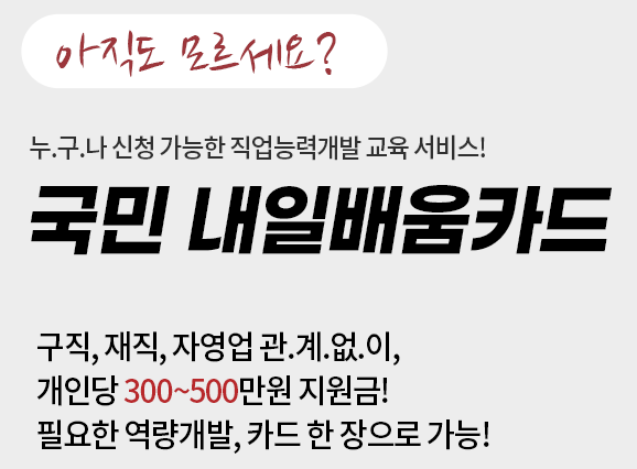 ➤ 국민내일배움카드는 직업능력개발 훈련비를 지원받는 정부 제도