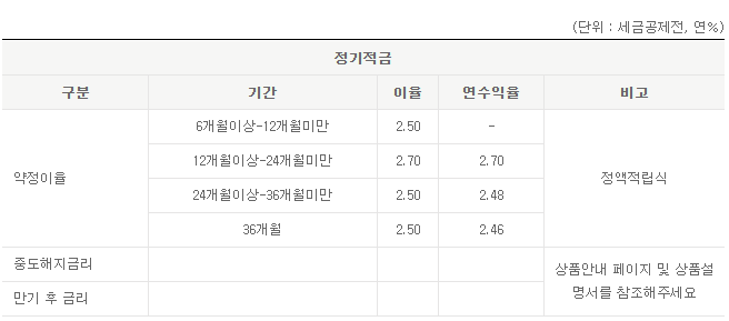 단기 6개월 상품은 연 2%대, 12개월 이상은 연 2.8% 수준으로 형성되어 있습니다.