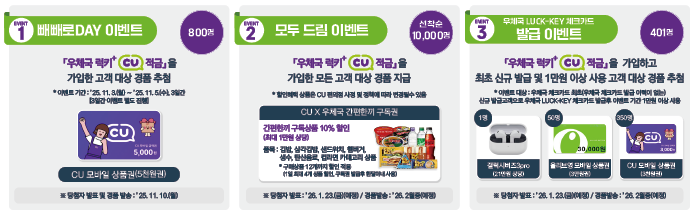 각 이벤트별 일정과 당첨자 발표일은 우체국예금 및 포켓CU 공식 공지사항에서 확인하실 수 있습니다.