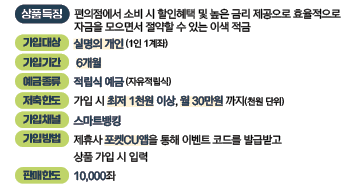 단기간에 안정적으로 자금을 모으고 싶은 사회초년생이나 편의점 소비가 많은 고객에게 유리합니다.