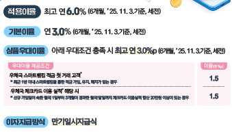 정확한 우대조건 및 계산 예시는 우체국 스마트뱅킹 내 상품 상세 페이지에서 확인하실 수 있습니다.
