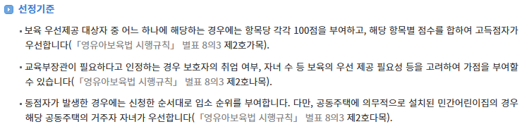 우선모집은 다자녀·맞벌이·취약계층 등 여러 항목을 기준으로 배정 순서를 결정하는 방식입니다.